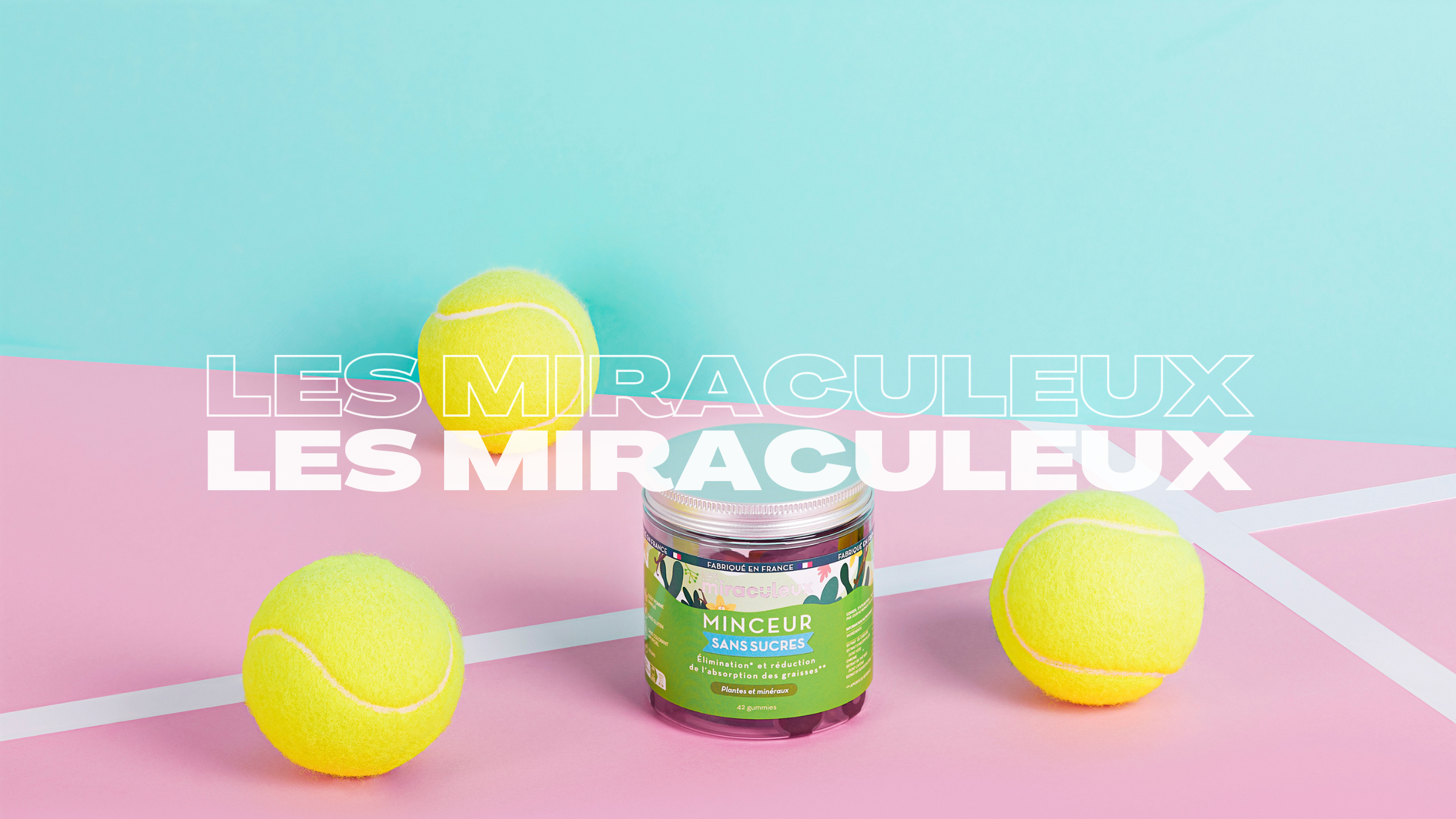 Création de visuels digitaux et print pour Les Miraculeux: Lancements tout au cours de l’année: gammes Sommeil, Beauté, Minceur puis lancement de la gamme Énergie. Direction artistique, confection d’un set en papier en volume aux formes colorées et graphiques, shooting dans mon studio Studio Hug Me, retouche des images et montage des gifs.